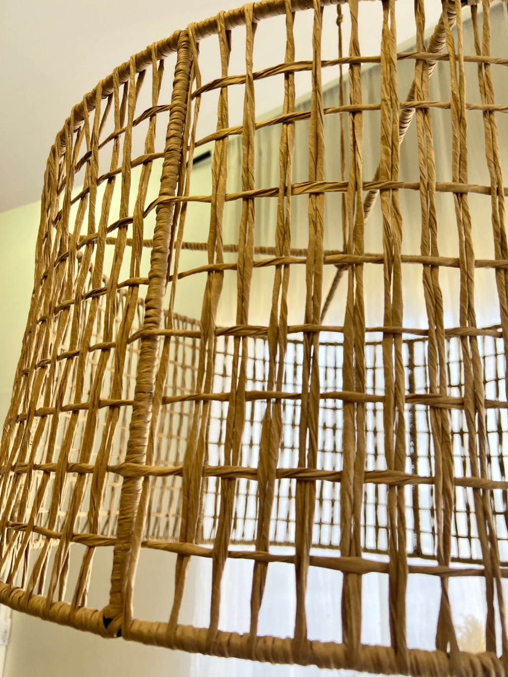 Lámpara estructura de hierro pintada en negro con cordón Kraft tostado.
