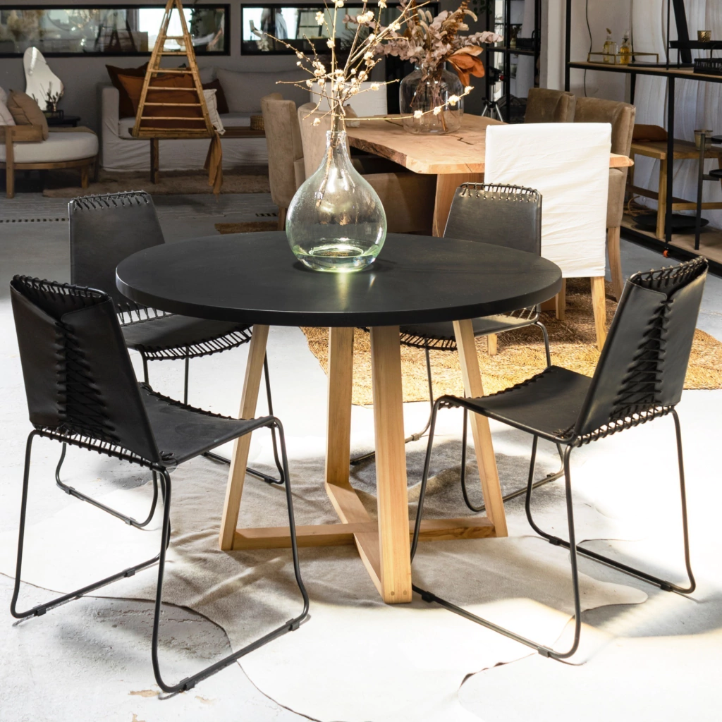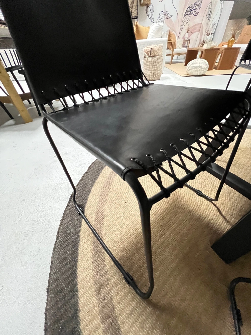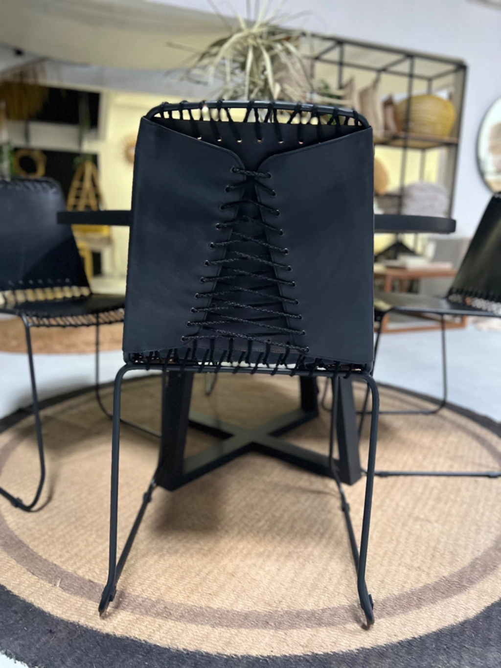 Silla realizada en cuero con estructura de hierro.