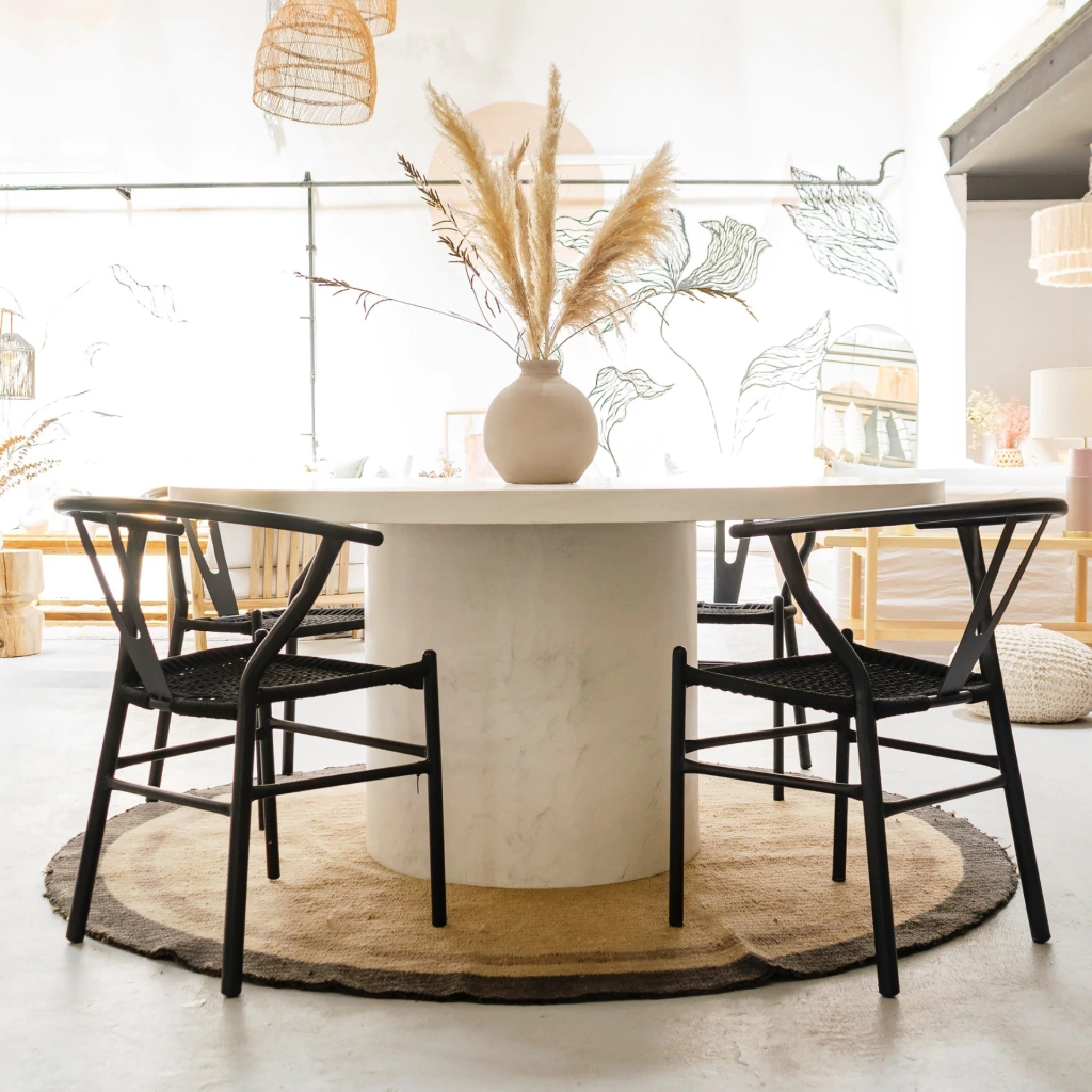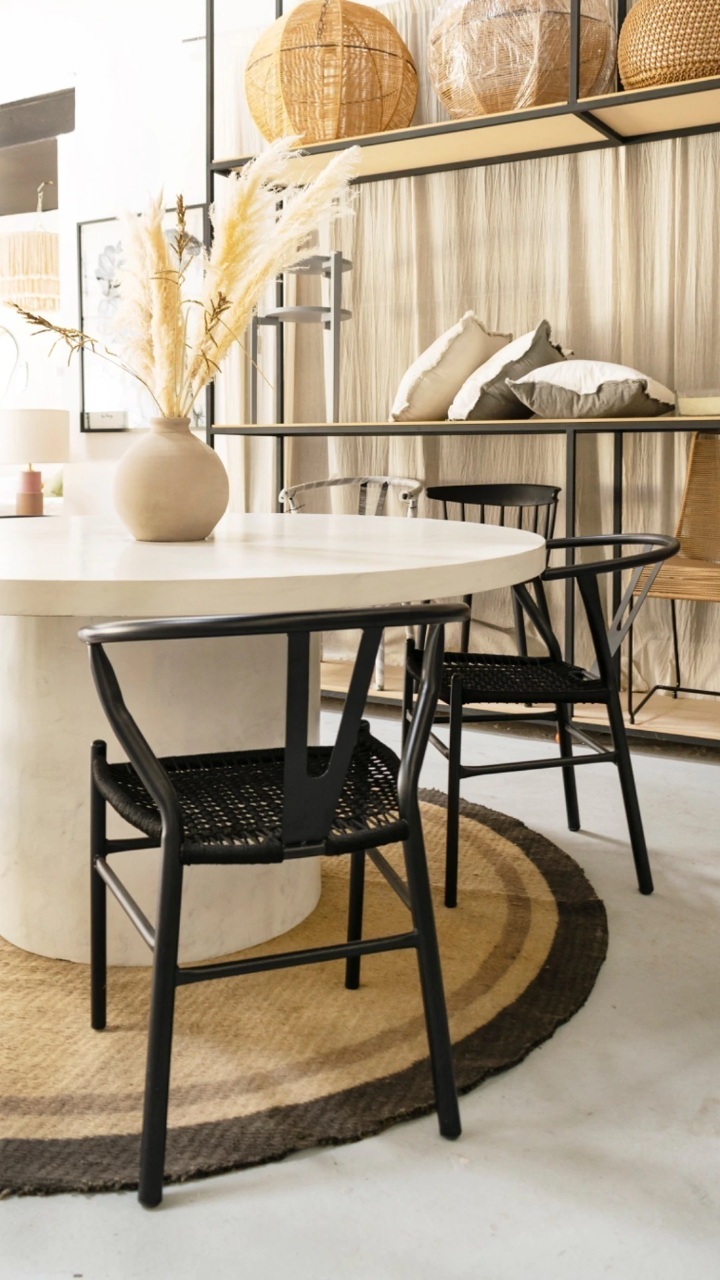 Silla modelo whisbone. Estructura de hierro pintada al horno en negro.